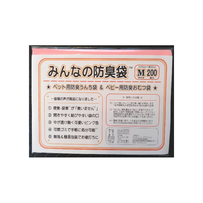 원본상품명:みんなの防臭袋 (ペット用 防臭うんち袋) 【M(巾200x長300) 200枚 ミルキ?ピンク色】