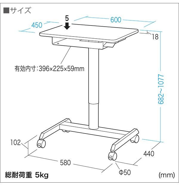 | サイズ | W600×D450×H682~1077mm 個装サイズ:65×62×18cm |