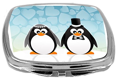 Rikki Knight Penguins in Love Wedding Illustration Design Compact Mirror, 17 Ounce