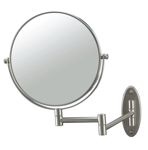 - Wall mount 7.5 inch mirror in matte nickel finish has tri-fold arm that extends to 12.5 inches for best viewing