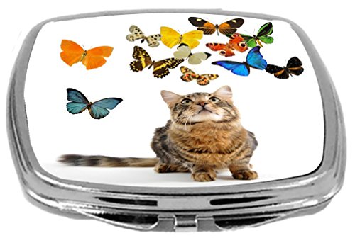 Rikki Knight Young Norwegian Cat Watching Butterflies Design Compact Mirror, 17 Ounce