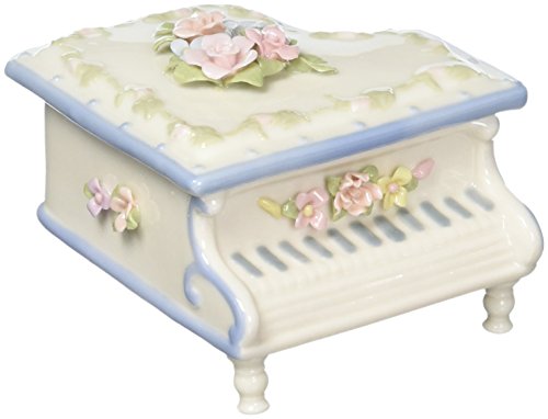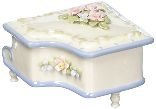 CG 10346 Elegant White Piano with Blue Trim and Flowers Box