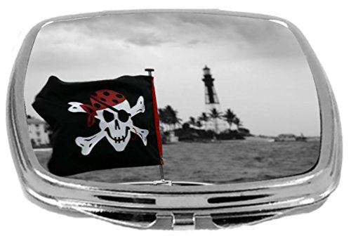 Rikki Knight Compact Mirror, Pirate Flag In Black and Red