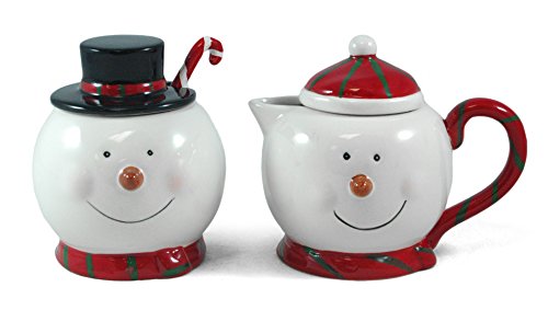 Product Description This beautiful snowmen sugar creamer set is sure to bring warmth and cheer to every table on Christmas! Festively trimmed in a red and green candy cane design. 0