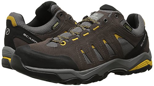 Studio : Scarpa Publisher : Scarpa Binding : Shoes Product Description FEATURES of the Scarpa Men's Moraine GTX Shoe Extended Comfort Gore-Tex for protection with maximum breathability Dual-Density compression molded EVA midsole provides ample support and comfort Structured toebox with abrasion-resistant toe rand Tongue lining with stretch Gore-Tex for outstanding fit and comfort in midfoot area SPECIFICATIONS of the Scarpa Men's Moraine GTX Shoe Upper: 1.8mm Nubuck/Suede and Recycled Polyester Mesh Lining: Gore-Tex - Extended Comfort Insole: Arch Suspension Midsole: Dynatech 3 - Dual-Density EVA Sole: Vibram Dynatech 3 Last: GT Weight: 1/2 pair: 13.7 oz / 388 g This product can only be shipped within the United States. Please don't hate us. 0