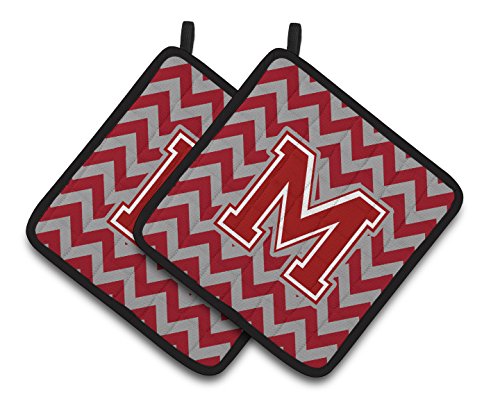 Caroline's Treasures Letter M Chevron Maroon & White Pair of Pot Holders CJ1049-MPTHD, 7.5HX7.5W, Multicolor