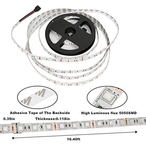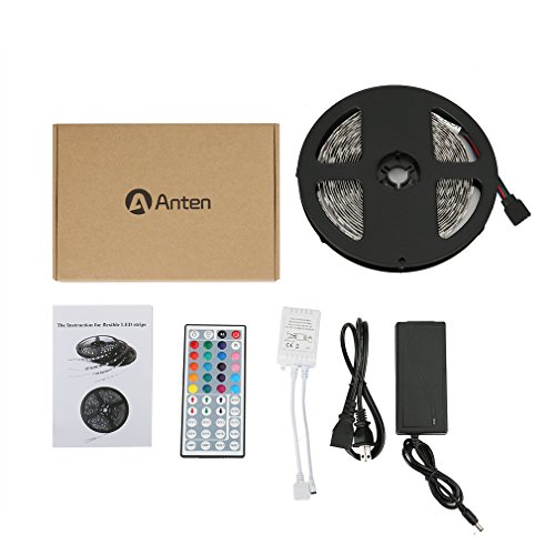 Anten LED RGB Strip Lights SMD 5050 Non-Waterproof 16.4ft 5M 300leds 20 Color Changing Flexible LED Rope Lights with 44Key Remote 12V Power Supply IR Control Box