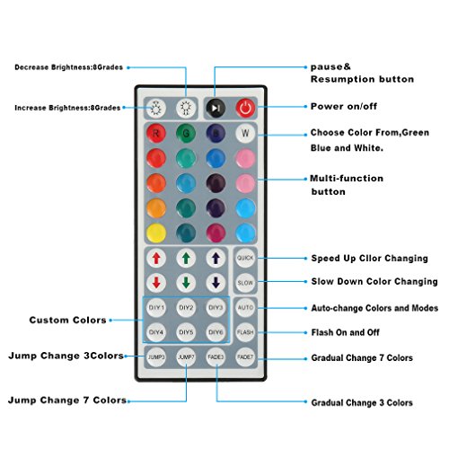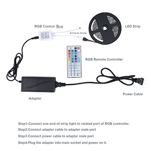 ★★★★★What You Get: Comes with RGB LED strip, 44 key remote controller, 12V/4A power supply, IR control box and connectors. No more accessories are required. 12 months hassle-free warranty for free replacement or full refund.