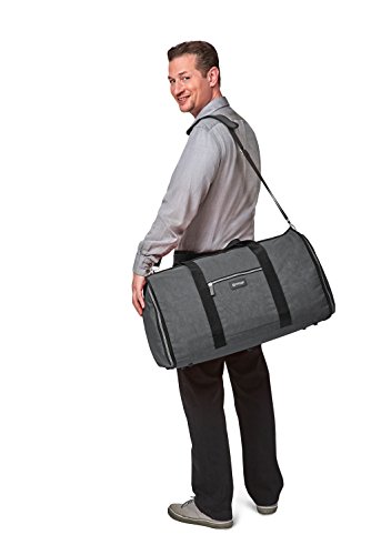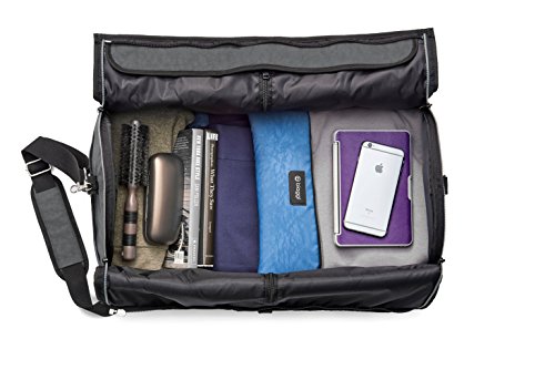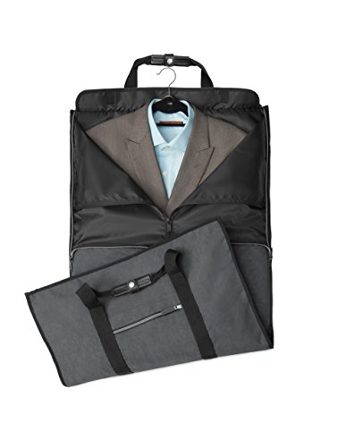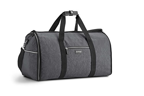 Studio : Biaggi USA LLC parent code Publisher : Biaggi USA LLC parent code Binding : Apparel Product Description Traveling with a suit, a dress, or anything that needs to be hung can be a hassle but the Biaggi Hangeroo Garment Satchel will make your business trips and weekends away a whole lot easier. This ingenious garment bag doubles as a spacious carry-on satchel, so your days of lugging around a garment bag and a carry on are behind you! Once you pack your hanging dress clothes, simply zip the wide side panels up, and you're left with an interior main compartment roomy enough to pack all of your carry on belongings. The satchel’s rounded edges keep your clothes fresh and wrinkle free, and zippered pockets and a cushioned shoulder strap, provide practical functionality. Once home or unpacked in your hotel, the Garment Satchel folds completely flat and can be stowed away until your next getaway 0