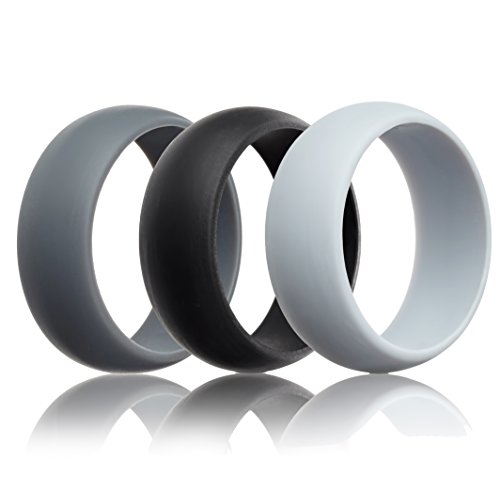 -. Title : Mens Silicone Wedding Ring Wedding Band - 3 Rings Pack - 8.7mm Wide (2mm Thick) - Black, Gray, Light Gray