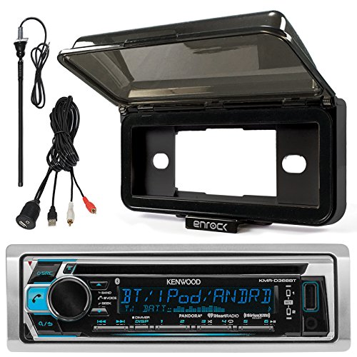 PACKAGE BUNDLE KIT INCLUDES: 1 Kenwood KMR-D368BT Single DIN Bluetooth In-Dash CD/AM/FM/Digital Media Marine Stereo Receiver - 1 Enrock Dash Kit Protective Cover For Stereos - 1 AUX / USB To RCA 10 inch Waterproof Cable - Enrock Rubber Mast Marine Boat Yacht AM/FM Radio Antenna.