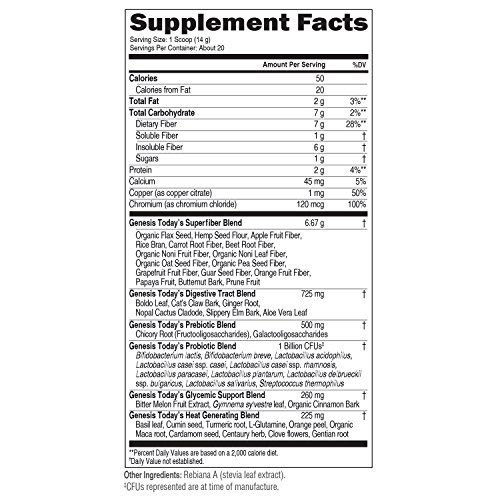 Product DescriptionGenesis Today Fiber delivers 7 grams and 9 types of dietary fibers per serving.0