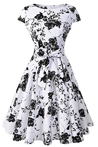 Cap sleeve floral print old-fashioned vintage dress with belt