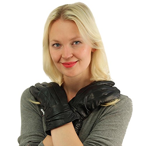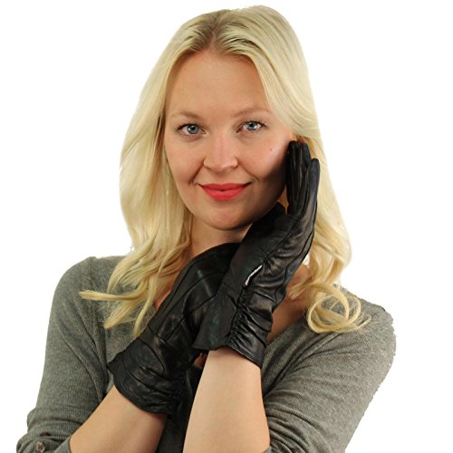 New Ladies Teens 3M Thinsulate 40 gram Insulation Lined 100% Genuine Soft Leather Full Outdoor Fitted Long Ruched Gauntlet Gloves Fall and Winter dress gloves, Not too thick, not too thin, just right and super warm. Great for all outdoor activities, everyday wear. New and improved quality and fit, thermal insulation lining. Makes a great gift. Pair off with your favorite, hats, scarves, earmuffs ear muffs and so much more. Great gift item for anyone. Will compliment any outfit. Thick and snug fit to insulate the warmth. 0 |