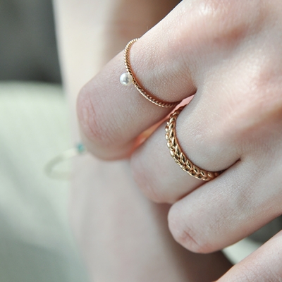 심플한 꽈배기 밴드에 3mm 사이즈의 미니 진주가 세팅되어, 앙증맞은 이미지의 반지 입니다.