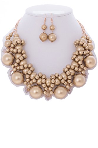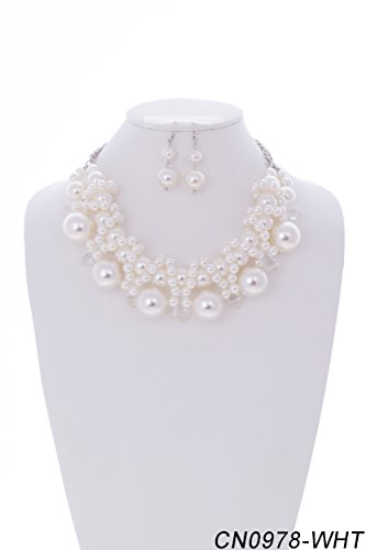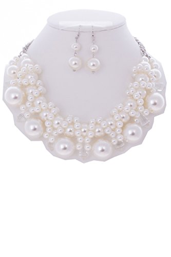 WOMEN'S FASHIONABLE MULTI-SIZED PEARL W CRYSTAL DROPS NECKLACE AND EARRINGS SET