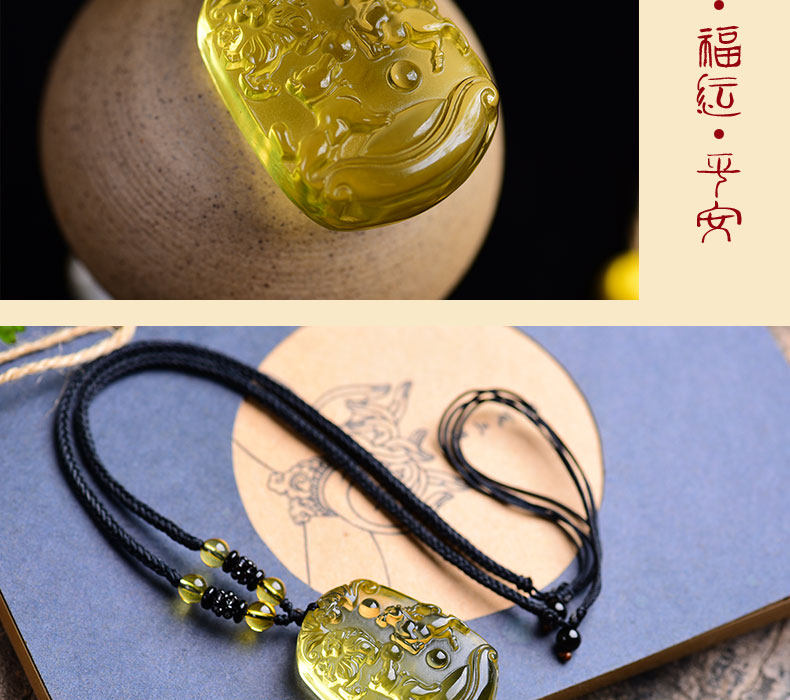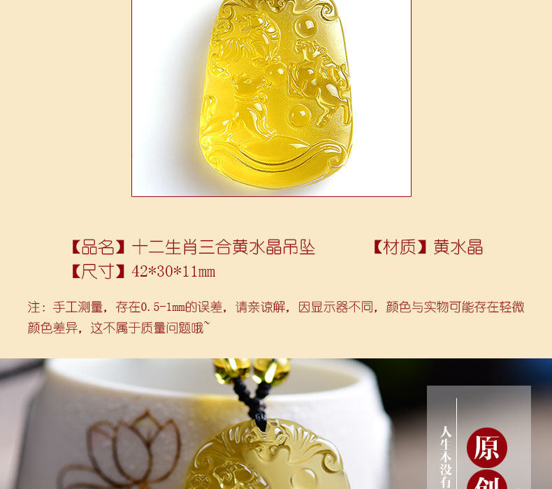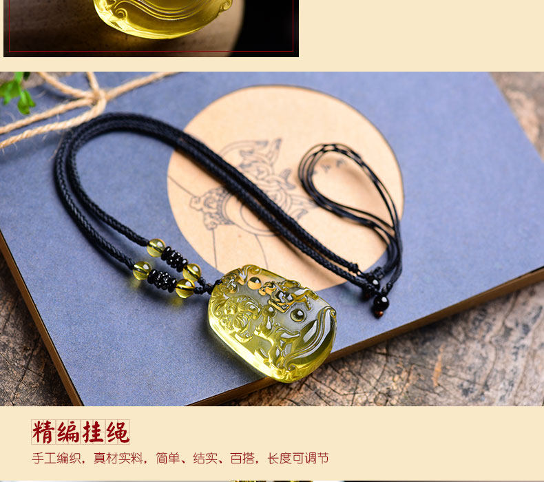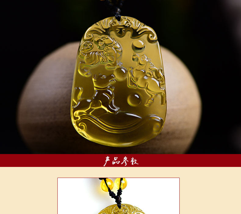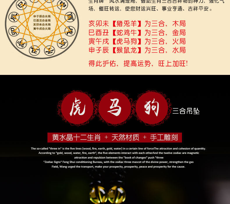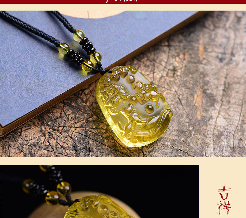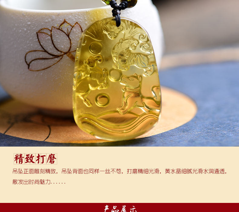 开光天然黄水晶生肖属虎马狗三合贵人吊坠寅午戌吉祥物男女款项链
