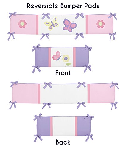 -. Feature : 9 Piece Set Includes: (1)Crib Blanket, (1)Bumper, (1)Fitted Sheet, (1)Skirt, (2)Window Valances, (1)Diaper Stacker, (1)Toy Bag and (1)Throw Pillow / **Sweet Jojo Designs also offers an 11 piece bumperless set / This set is designed using pink and purple butterfly and flower appliques and embroidery works. / This set is made of 100% cotton and machine washable. / This design has matching accessories such as mobiles, lamp shades, window treatments and wall decor.