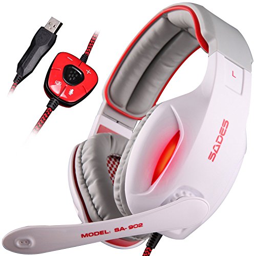 SADES SA902 7.1 Surround Stereo Pro PC Gaming Headset Headband USB Headphones with Microphone LED Lighting(White)