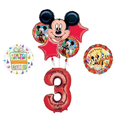 -. Feature : (1) 27" Mickey Mouse Head Foil Balloon / (1) 18" Birthday Present Balloon / (1) 34" Giant Red Number 3 Balloon / (2) 18" Mickey's Clubhouse Foil Balloons and (1) 18" Mickey and Friends Birthday Balloon / (2) 19" Red Star Foil Balloons