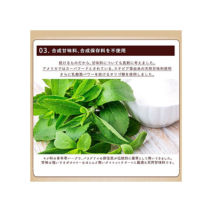 3종류의 국산 유산균을 1배에 약1000억개 배합(식물성 유산균,비피더스균,유산균EC12)