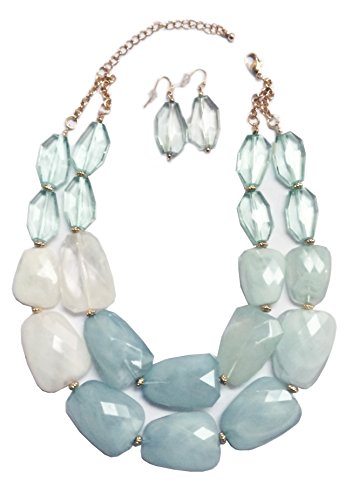 Double strand mixed aqua greens color palette is perfect compliment to any outfit and makes a statement. Necklace measures 18 inches and has a 3 inch extension chain. Can be worn at the office or out on the weekend.