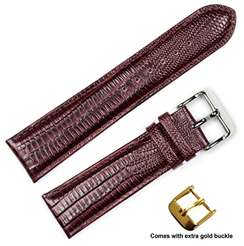 -. Title : deBeer brand Teju Lizard Grain Watch Band (Silver & Gold Buckle) - Brown 20mm