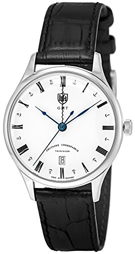 독일 시계사를 대표한다「DUFA」서는 고품질을 유지하면서도,우수한 코스트 퍼포먼스와 심플하고 낭비이 없는 기능미를 추구했다디자인가 특징의 브랜드입니다.독일 역사적 문화 도시로 되는《바이마루》의 명(이름)를 관고,독일의 정신과 문화의 원점을 테마로 했다「Weimar GMT」시리즈.숫자와 바늘의 형상이 특징적인 GMT모델로,파타입의 바늘은,제2시각을 설정 가능.인덱스는,로마숫자와 아라비아 숫자가 번갈아 표시 되고 내리고, 24시간표시의 역할도 완수해 있습니다. 평상시 사용이나 비즈니스 현장으로도 쓸만한 아이템입니다./일상생활 방수/날짜 표시/GMT기능/팔 주위(최대) 약19cm