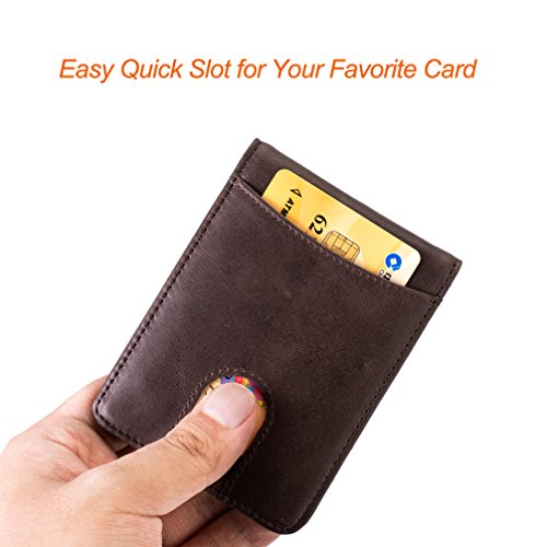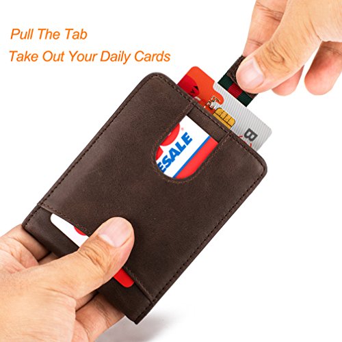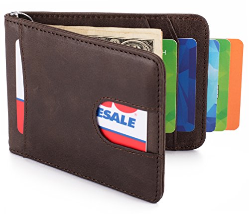 -. Binding : Apparel -. Brand : HISSIMO -. Department : mens -. Feature : Slim and functional, for those people who want to sliming their pockets / Measures 4-1/8 x 3-1/16 inches, best suited to 5-8 cards plus 10+ US bills / Outside:1 Quick Access Slot for your most-used cards and plus a clever pull-tab section for 2-4 daily cards; Inside: a money clip to hold cash, 2 card slots, 1 ID/Photo window slot / We used a very solid metal money clip for making sure the cash section durable / Made from top-grain cowhide leather and build into a RFID blocking layer to keep your bank cards safe -. ProductGroup : Shoes -. ProductTypeName : ACCESSORY -. Size : Small -. Title : Slim Leather Front Pocket Wallet Money Clip with Pull Tab Slot and RFID Blocking
