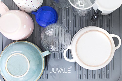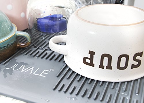 HIGH QUALITY: Made of Premium 100% antimicrobial & antibacterial FDA food-grade silicone, this dish-drying mat prevents the growth of germs, mold and mildew, leaving you & your family with safe, clean and dry dishes.