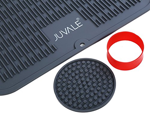 Kitchen Counter Dry Dish Mat, Silicone Dish Drainer and Sink Stopper, Washing and Drying Pad for Kitchen Sink Dish Straining, Protection and Storage, Grey, 17.75" x 15.5" x .25"