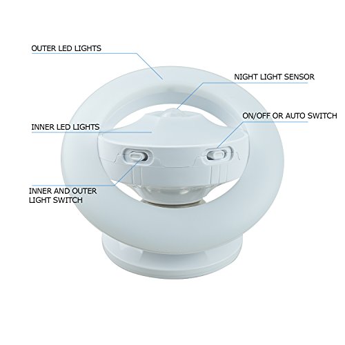 - 360 ROTATION - Clearon UFO shaped design allows you to arbitrarily change the lighting direction and turns front and back 180 degrees, as far as possible to meet your lighting needs.