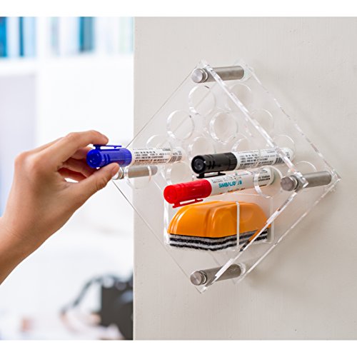 11 Slot Clear Acrylic Diamond Shape Wall Mounted Dry Erase Marker Organizer & Eraser Holder Rack - MyGift