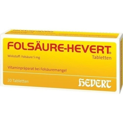 -. Binding : Badartikel -. Brand : Hevert Arzneimittel GmbH & Co. KG -. EAN : 4150034773466 -. Feature : PZN-03477346 / 20 St Tabletten / apothekenpflichtig / Zu Risiken und Nebenwirkungen lesen Sie die Packungsbeilage und fragen Sie Ihren Arzt oder Apotheker. / Dieses Produkt darf nicht an Personen unter dem gesetzlichen Mindestalter abgegeben werden. -. IsAdultProduct : 0 -. Label : Hevert Arzneimittel GmbH & Co. KG -. LegalDisclaimer : Zu Risiken und Nebenwirkungen fragen Sie Ihren Arzt oder Apotheker. -. Manufacturer : Hevert Arzneimittel GmbH & Co. KG -. MPN : 03477346 -. PackageQuantity : 1 -. PartNumber : 03477346 -. ProductGroup : Drogerie & Körperpflege -. ProductTypeName : HEALTH_PERSONAL_CARE -. Publisher : Hevert Arzneimittel GmbH & Co. KG -. Studio : Hevert Arzneimittel GmbH & Co. KG -. Title : FOLSAEURE HEVERT, 20 St