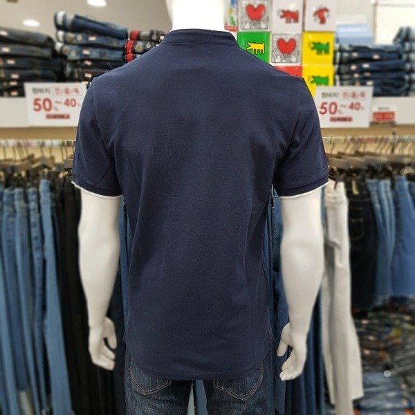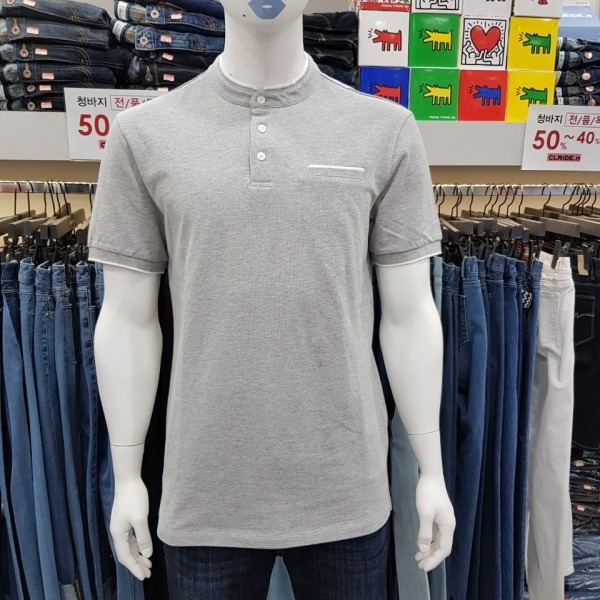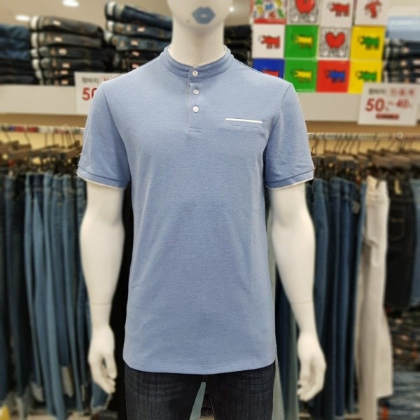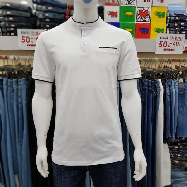 남성용 헨리 넥 버튼 카라 티셔츠 입니다^^?2018년 S/S 신상품으로 기본 깔끔한 디자인에 가슴포켓,넥 라인과 소매 끝부분 배색으로 포인트를 더하였습니다. 데님,면바지, 슬렉스 등 어떤 하의와 매치하셔도 잘 어울린답니다.?