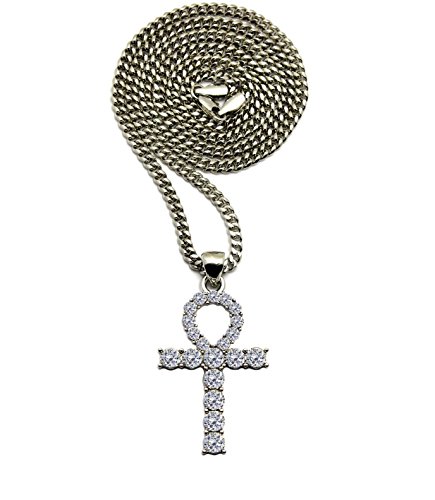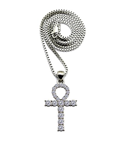 -. Binding : Jewelry -. Brand : Shiny Jewelers USA -. Department : mens -. Feature : COLOR : Silver / Pendant Size : 1 " x 2 " / Box Chain : 2mm/24" Cuban Chain : 4mm/24" Rope Chain : 2mm/24" / 100 % Brand New / Gold, Silver and Diamond terms used to describe this product is not authentic please do not confuse with real Gold, Silver and Diamond. -. Label : unbranded -. Manufacturer : unbranded -. ProductGroup : Jewelry -. ProductTypeName : FASHIONNECKLACEBRACELETANKLET -. Publisher : unbranded -. Studio : unbranded -. Title : MENS ICED OUT SILVER EGYPTIAN ANKH CROSS PENDANT BOX ROPE CUBAN CHAIN NECKLACE