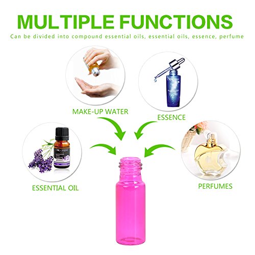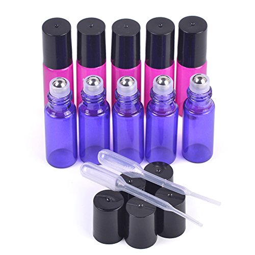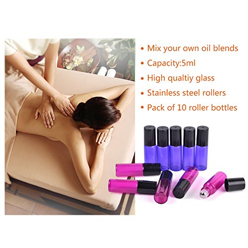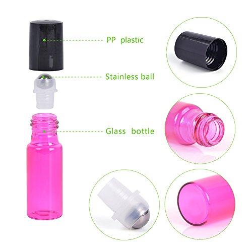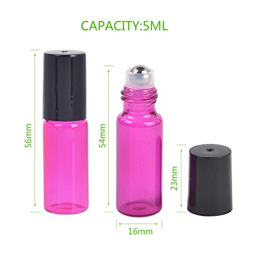 MUB Essential Oil Roller Bottles-5 ml Glass Roller Bottles for Essential Oils with Stainless Steel Roller Balls Including 2 Free Funnels (Pack of 10-5 Pink and 5 Purple) Mother's Day Gift