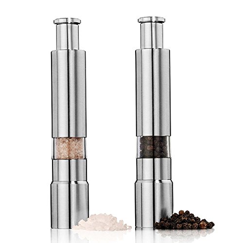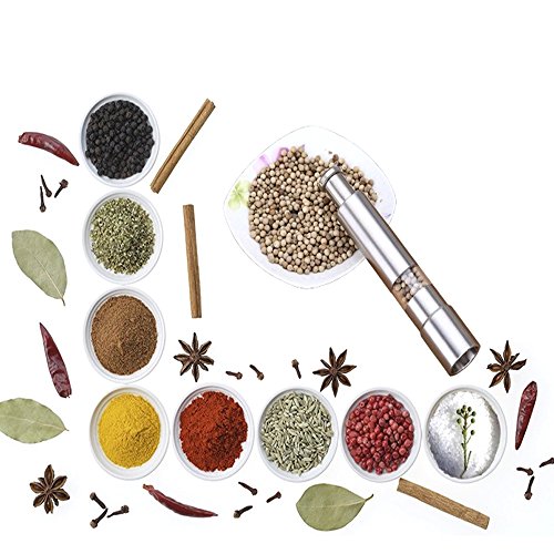 Stainless Steel Manual Pepper & Salt Grinder / Mill - Easy to Use by One Hand Operated, Convenience to Use Both at Home or Outdoor (Picnic, Travel etc.)