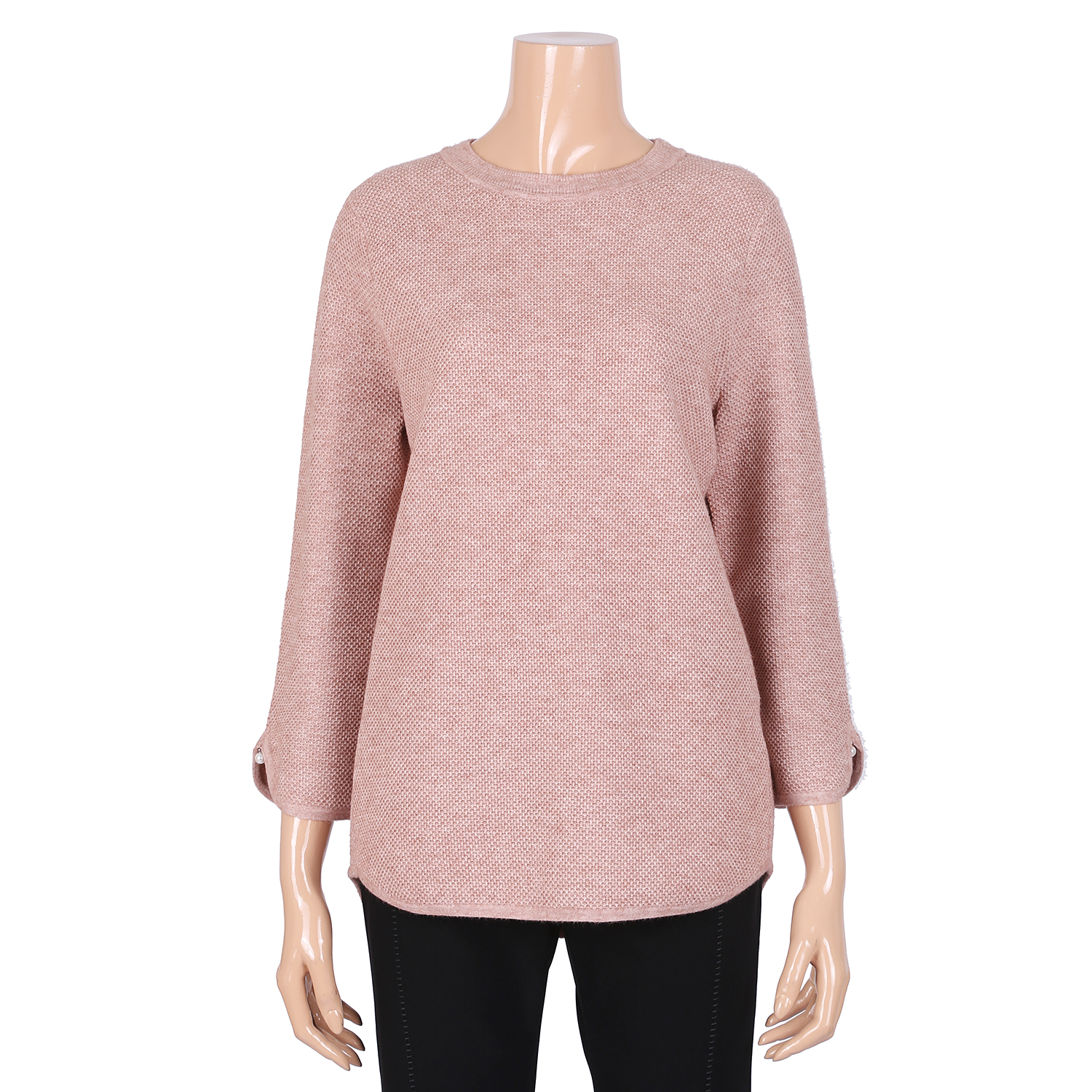 적당히 파인 라운드넥의 꾸미지 않은듯 하면서도 세련되괴 자연스러운 니트 티셔츠입니다