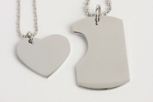 - Feature : *IMPORTANT* Please include the engraving instructions in a message or email to us through Amazon after the order is placed. There is no customization option upfront so you must send us a message after checkout. Please include text as well as font style. / DIMENSIONS(heart): 0.5 inch wide x 0.5 inches tall (dog tag): 0.750 inch wide 0.750 inches tall / Both the dog tag and heart can be engraved with any of the font styles shown to the left of the sample picture. / Includes 2 stainless steel chains / High Polished Stainless Steel Dog Tag & Heart Necklace Set