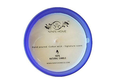 Lavender Scented All Natural Soy Wax Dripless Smokeless Candle with 100% Cotton Wick and Holder for Aromatherapy Meditation and Relaxation Organic Vegan Stress Relief Italian Design UK Formulated 7oz
