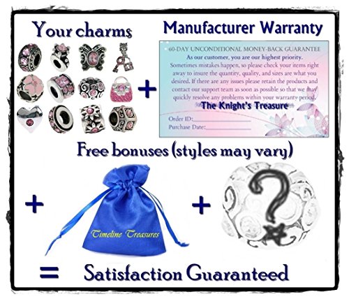 - Feature : INCLUDES ONE BONUS European-style charm, gift bag, and manufacturer warranty card with every order, suitable for immediate gift giving, making this A Real Value. / HYPO-ALLERGENIC materials to avoid nearly all metal allergy problems: Nickel, Lead & Cadmium-Free. HIGH QUALITY antique silver color plated zinc alloy resists corrosion and wear. / October birthstones rose pink rhinestone crystals also great for Mother's day and Easter or to complement a breast cancer awareness accessory. Bulk lot of 12 spacers like those pictured and no duplicates. Includes sparkle enamel flower and purse beads, key and lock pendant, mini engagement ring, heart, butterfly, drum, round, rondelle, donut, square, hexagon, scroll, heart, handbag, and tube shapes. / COMPATIBLE fit with Add a Bead jewelry bracelets and necklaces brands like Trollbeads Chamilia Biagi Caprice Hallmark Connections Oriana Lovelinks Reflections Individuality Storywheel Novobeads Storyvines DaVinci Soufeel Kays Ohm SimStars Charmed Memories Brighton Zable and Pan.dora. / 60-DAY UNCONDITIONAL original manufacturer money-back guarantee from The Knight's Treasure. Carefully hand selected to insure quality. Unthreaded core size 4.5-5.5mm.