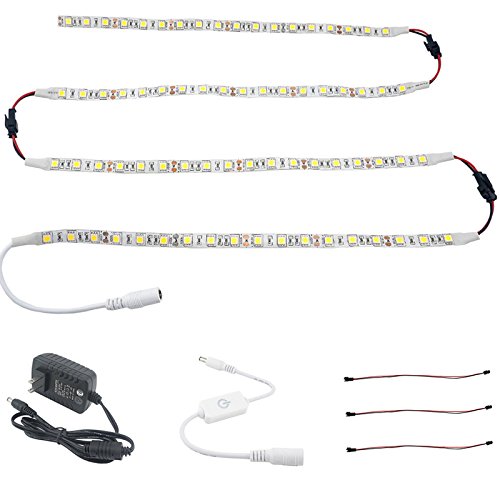- Complete under cabinet strip lighting kit: including 4 x 12 inches strip light, 3 x 20 inches extend cord, 1 x 2a us adapter, 1 x dimmer switch, 9 x 3M Adhesive Tape;