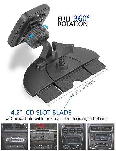 Sturdy CD Mount: Screw-Locked base design, much securer than the air vent mount, suction mount. And it fits almost all CD slot.