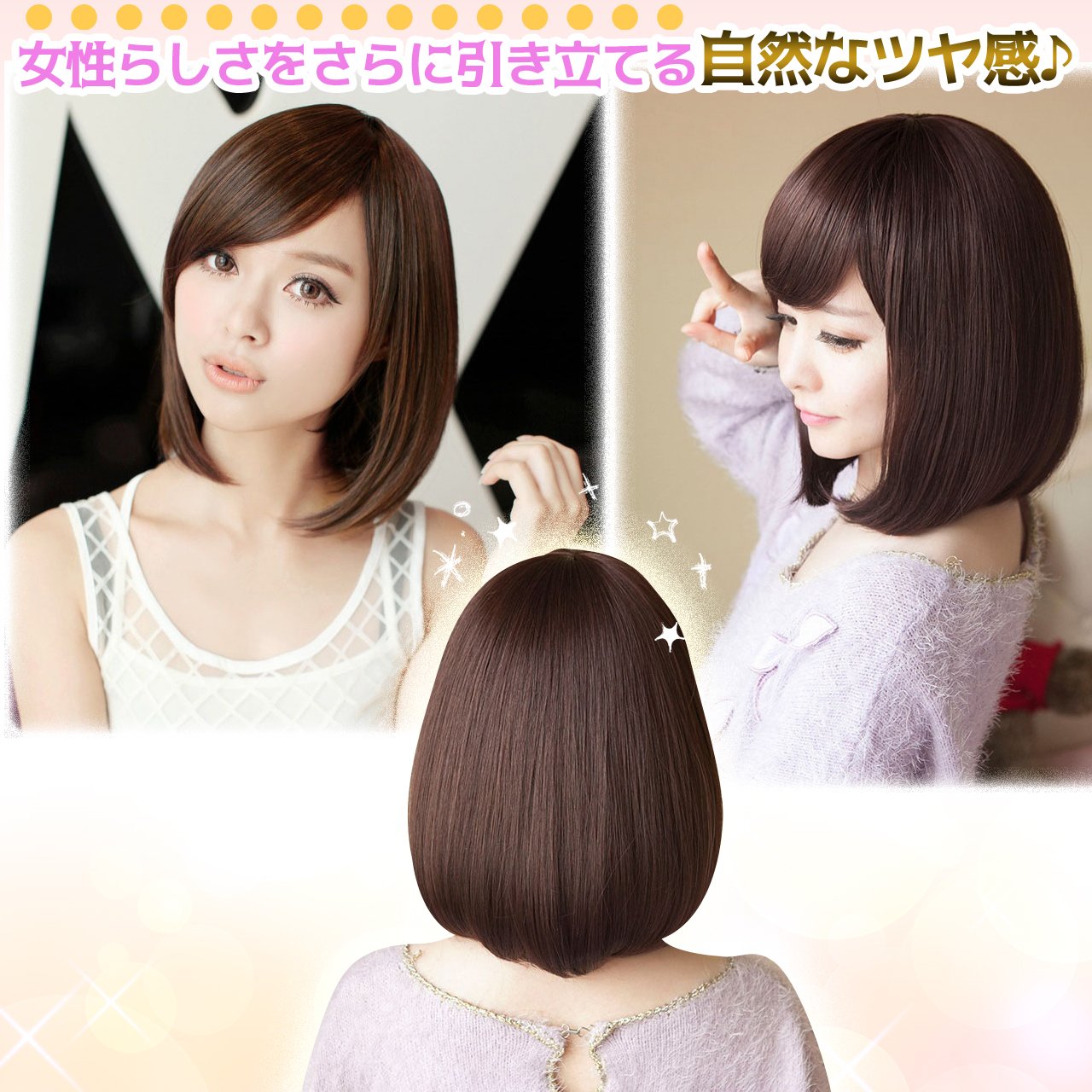 A semi-long Bob Wig with a net that you can use with confidence even if you are trying a wig for the first time.