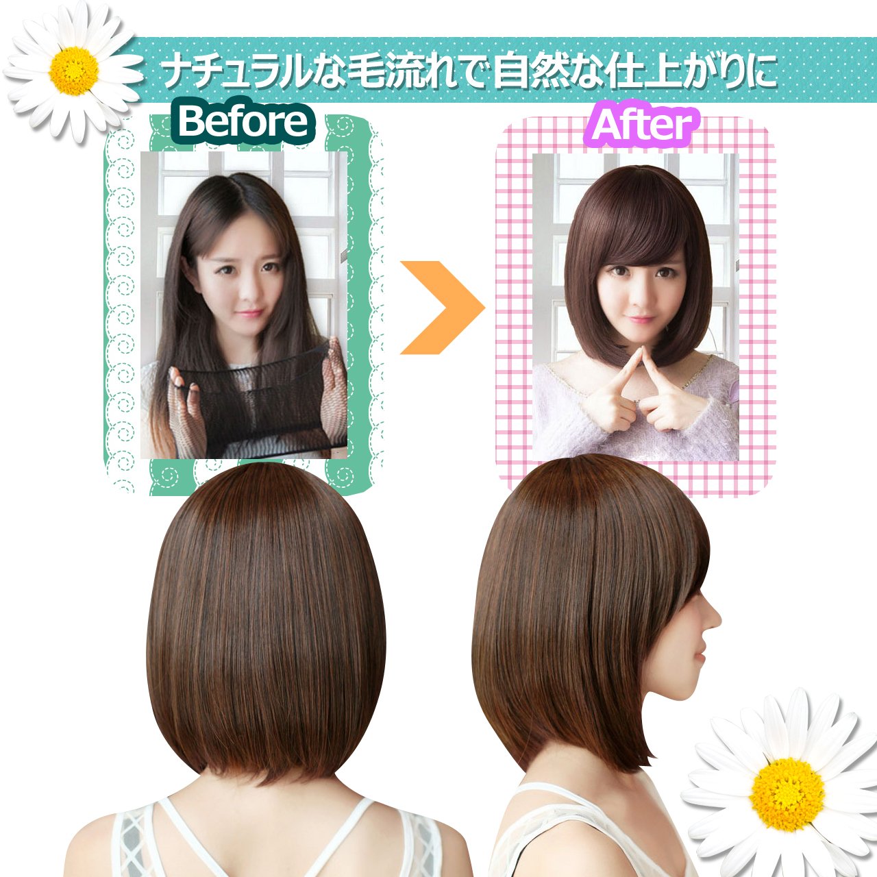 Girl power UP with semi-long with small face effect!