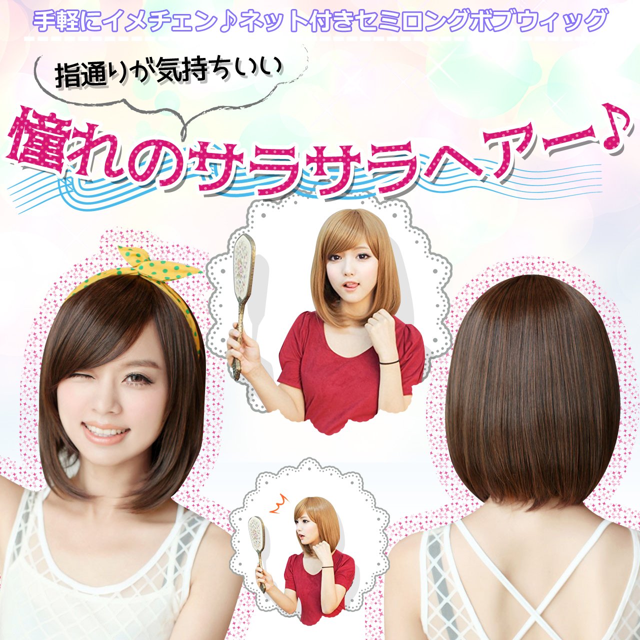 Easy imechen ♪ semi-long bob wig with net