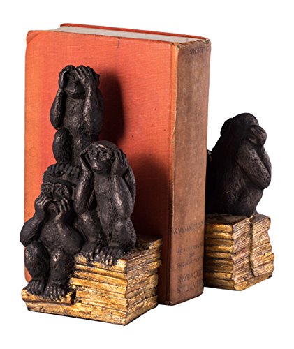 Paloma Collection AJ-R10K Resin Cast "Hear, Speak & See No Evil" Monkey Bookends, Brown