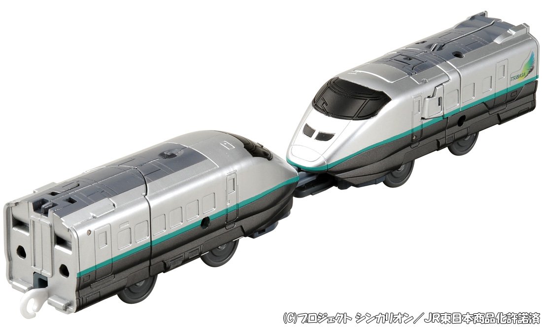 Although the same size as the pla rail, the leading car and the tail car are connected and combined, and it transforms into Shinkallion E 3 Tsubasa Iron Wind.
