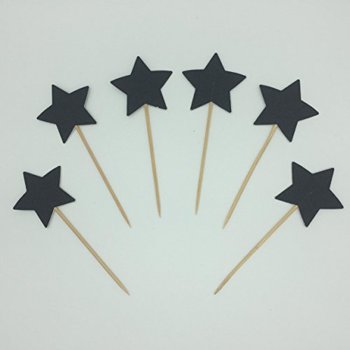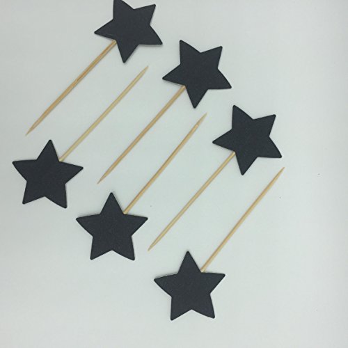 TooMeeCrafts Double Sided Star Topper Black Glitter Star Wand Cake Topper Cupcake Topper Wedding Cupcake Toppers Set of 18